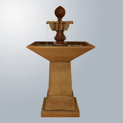 The Avalon Square Fountain is a beautifully crafted cast stone fountain that brings timeless elegance and soothing water sounds to any outdoor space. Made in the USA, this premium fountain is built with fiber-reinforced concrete for exceptional durability and is available in a variety of hand-applied finishes. Its classic square design and cascading water make it a striking centerpiece for gardens, patios, or courtyards.