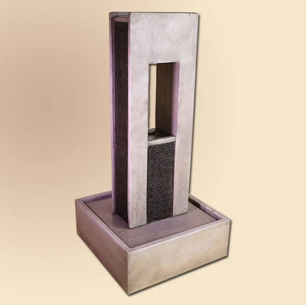 Elevate your outdoor space with the stately Brentwood Tower Fountain. Handcrafted in the USA from durable, fiber-reinforced cast stone concrete, this fountain features a tall, elegant design that creates a striking focal point in gardens, patios, or courtyards. Shown in a sophisticated Two-Tone French Limestone and Walnut finish, the Brentwood Tower Fountain is available in a variety of custom, hand-applied finishes to match your style. Its built-in recirculating pump provides a soothing waterfall sound without the need for plumbing, offering both beauty and simplicity.