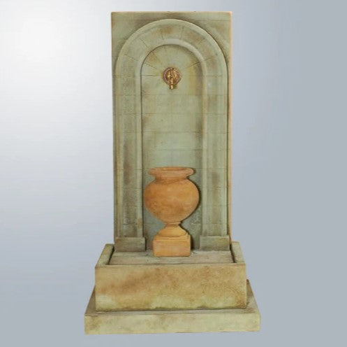 The Etruria Urn Wall Fountain for Spout is a sophisticated and durable outdoor water feature designed to enhance any space with its timeless elegance. Constructed from high-quality fiber-reinforced cast stone concrete, this fountain offers lasting beauty and a soothing waterfall sound. Available in a variety of premium finishes, it requires no plumbing for easy installation and can be paired with a spout of your choice for a personalized touch.