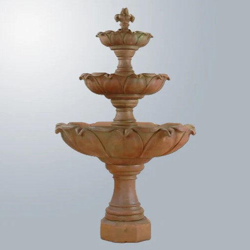 The Gardenia Three Tier Fountain features a slim base and elegant ascent, drawing attention to its beautifully designed floral tiered bowls. As water cascades gracefully from one tier to the next, it creates a mesmerizing visual display and a soothing sound, enhancing any outdoor space with both beauty and tranquility.