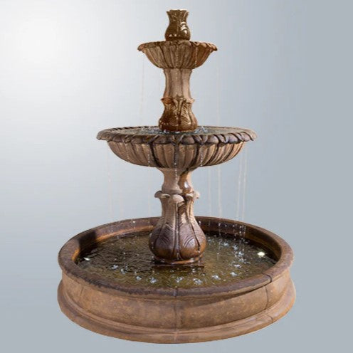 The Grandis Calanthia Two Tier Pond Fountain brings majestic beauty and tranquil sounds to any outdoor setting. Standing an impressive 87 inches tall, this handcrafted fountain features two gracefully tiered bowls, allowing water to flow smoothly and create a peaceful ambiance. Crafted in the USA from durable, fiber-reinforced cast stone concrete, the Grandis Calanthia offers a range of premium, hand-applied finishes for a custom look. Its large size and elegant design make it a breathtaking centerpiece for spacious gardens, courtyards, or estates.