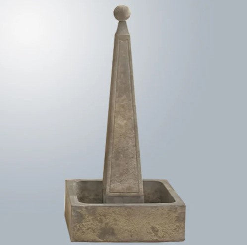 The Obelisk Fountain is a stunning and elegant addition to any outdoor space, featuring a timeless design and the soothing sound of flowing water. Crafted from high-quality fiber-reinforced cast stone concrete, this durable fountain is built to withstand the elements while maintaining its beauty for years to come. Available in multiple premium finishes, it can be customized to complement your landscape. With easy installation and no plumbing required, it includes a recirculating electric pump for continuous operation.