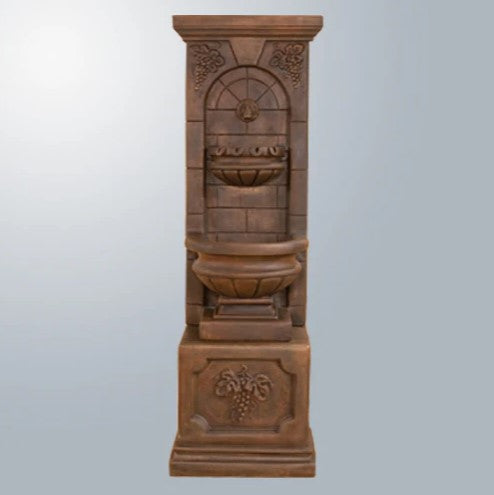 The St. Helena Fountain With Base & Concrete Spout offers a timeless, vertical design ideal for adding elegance and tranquility to patios, courtyards, and garden walls. Expertly handcrafted in the USA from premium fiber-reinforced cast stone concrete, this fountain includes a sturdy base and classic concrete spout, producing a gentle waterfall sound that enhances any outdoor atmosphere. With its durable construction, custom hand-applied finishes, and simple recirculating pump system, this fountain delivers visual appeal and low-maintenance operation—no plumbing required.