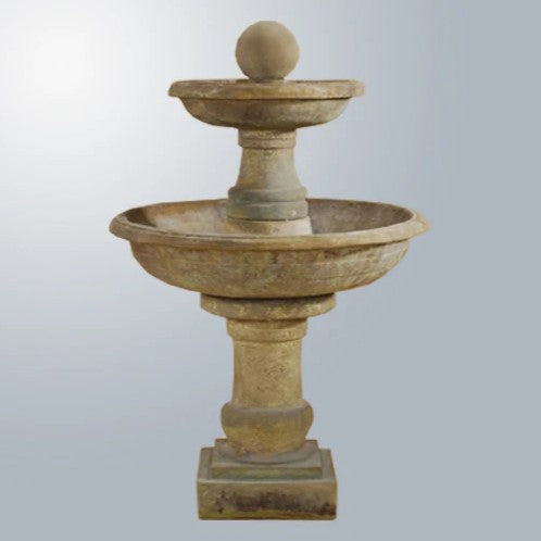 Enhance your garden or patio with the graceful elegance of the Tosca Two Tier Fountain. Standing at 48 inches tall, this beautifully crafted fountain delivers the calming sound of cascading water from two tiers. Made in the USA from durable, fiber-reinforced cast stone concrete, it’s built to last and available in a variety of hand-applied premium finishes. With no plumbing required and an included recirculating pump, it’s both a charming and convenient addition to any outdoor space.