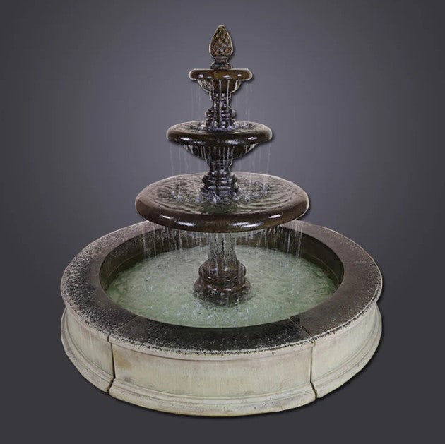 Bring grandeur and elegance to your outdoor setting with the Grand Newcastle Three Tier Easy Pond Fountain. Standing at an impressive 77 inches tall, this eye-catching fountain features a beautifully tiered design that creates a soothing cascade of water. Expertly crafted in the USA from fiber-reinforced cast stone concrete, it’s built to endure the elements while maintaining its timeless beauty. With customizable finish options and no plumbing required, this fountain offers both luxury and convenience for your garden, courtyard, or estate.