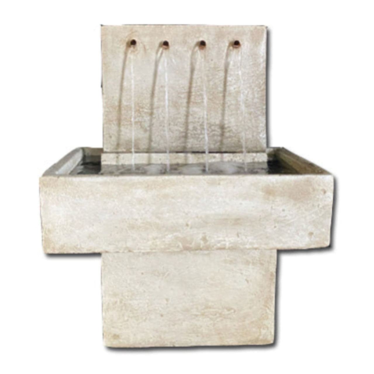 Introducing the Mystic Streams Modern Water Fountain, a striking addition to elevate your outdoor space and immerse it in tranquility and beauty. At 38½ inches tall, 30 inches wide, and 20 inches deep, this magnificent fountain commands attention while seamlessly blending into its surroundings. Weighing in at 440 lbs, it is sturdily constructed from high-quality cast stone, ensuring durability and resistance against the elements.